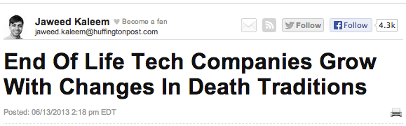 We were featured in Huffington Post article: "End Of Life Tech Companies Grow With Changes In Death Traditions."